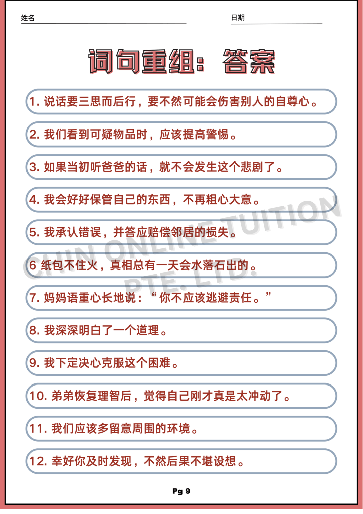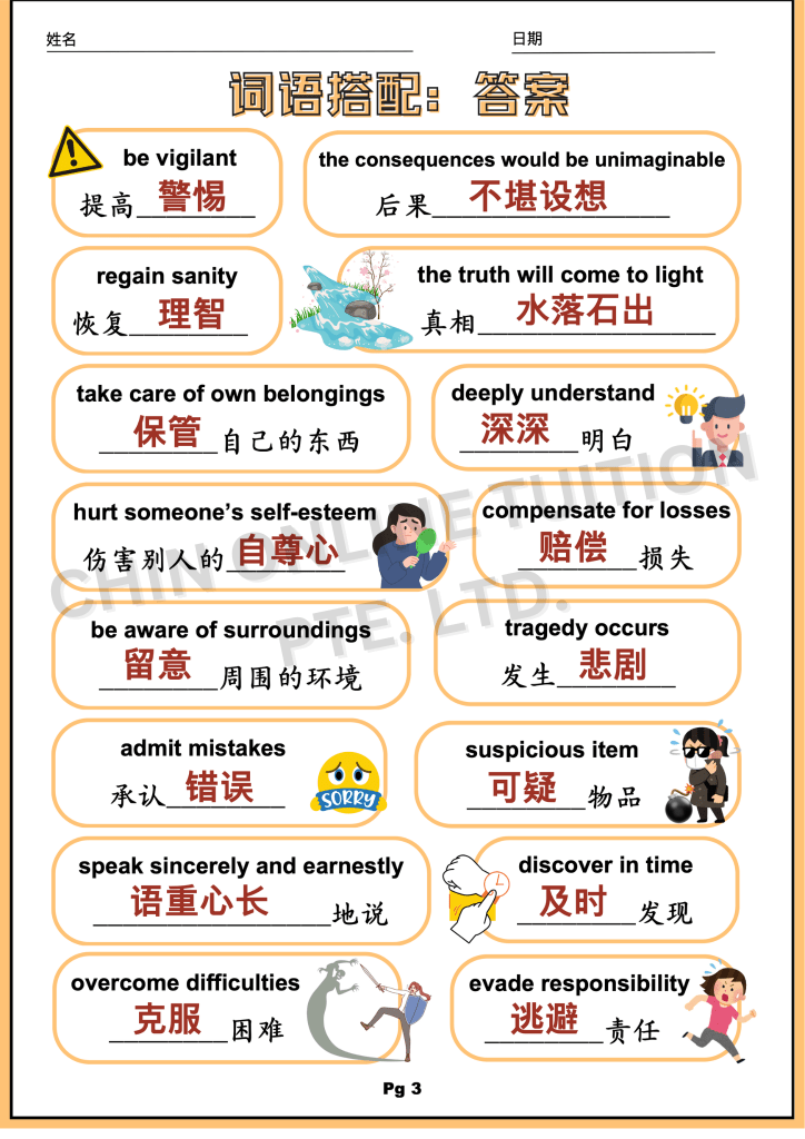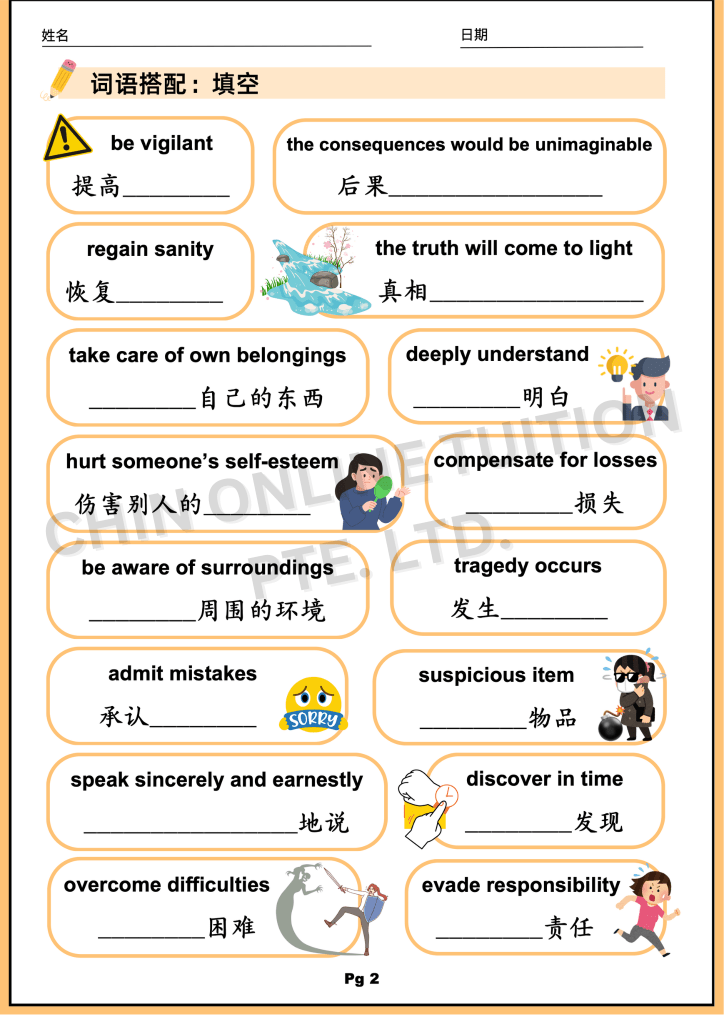 今天这一篇,我们将提供一份后续练习,包括 中英对照、填空题、词语搭配、词句重组 等循序渐进的训练。通过这些练习,考生不仅能背诵,还能真正掌握这些 PSLE作文常用好词好句 的运用方法。